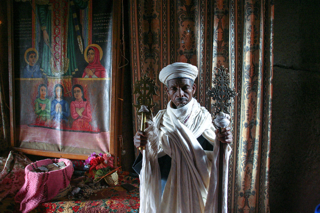 2. Ethiopie - Lalibela. Priester in rotskerk